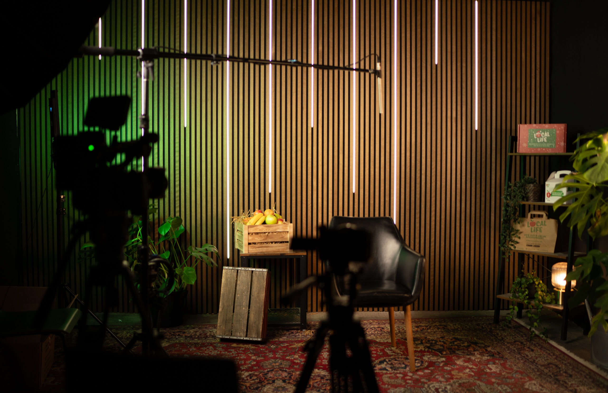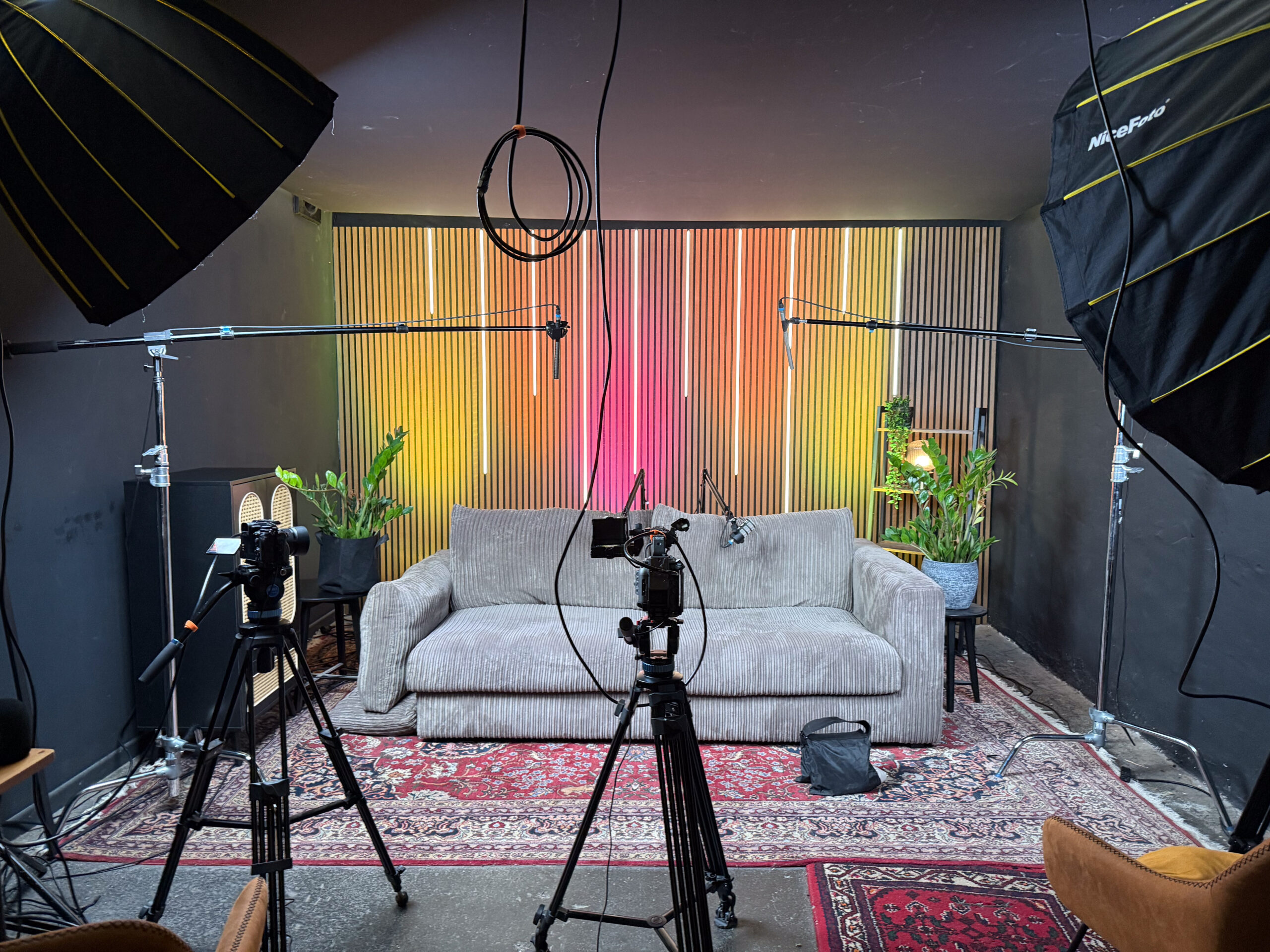 Beide Studios sind ca. 4×4 Meter groß, bieten dir ein wandelbares Setting und lassen sich individuell gestalten – egal ob Business-Podcast, lockere Gesprächsrunde oder Videopodcast mit Personality.